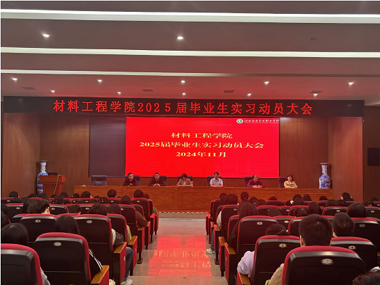 为做好学院2025届毕业生实习工作,引导同学们明确实习的相关要求,11月9日上午,材料工程学院在学校图书馆学术报告厅召开2025届毕业生实习动员大会。学院副院长张冬梅,学院教研室、办公室、产业学院负责人,教务干事、就业干事、班主任及以及全体2025届毕业生参加了此次实习动员大会。大会由学院办公室主任郭璇主持。