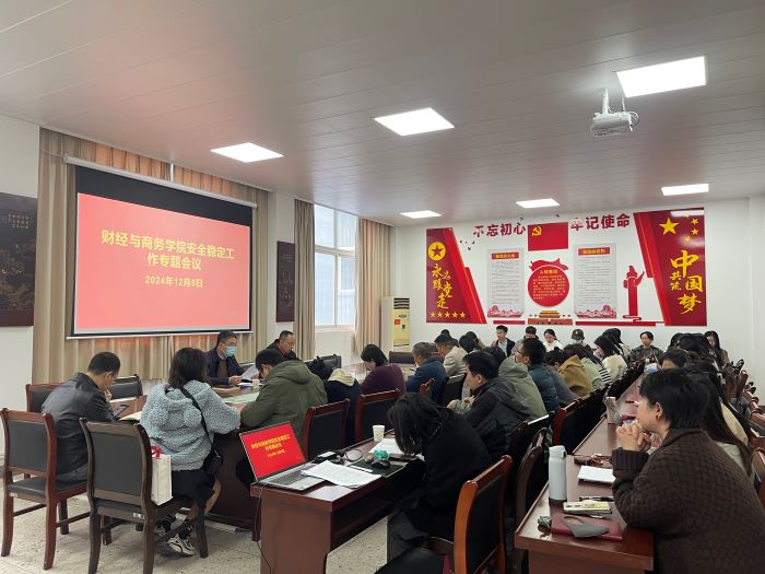 12月5日下午,财经与商务学院召开安全稳定工作专题会议,全体教职工参加会议,学院党总支副书记肖随龙主持会议。