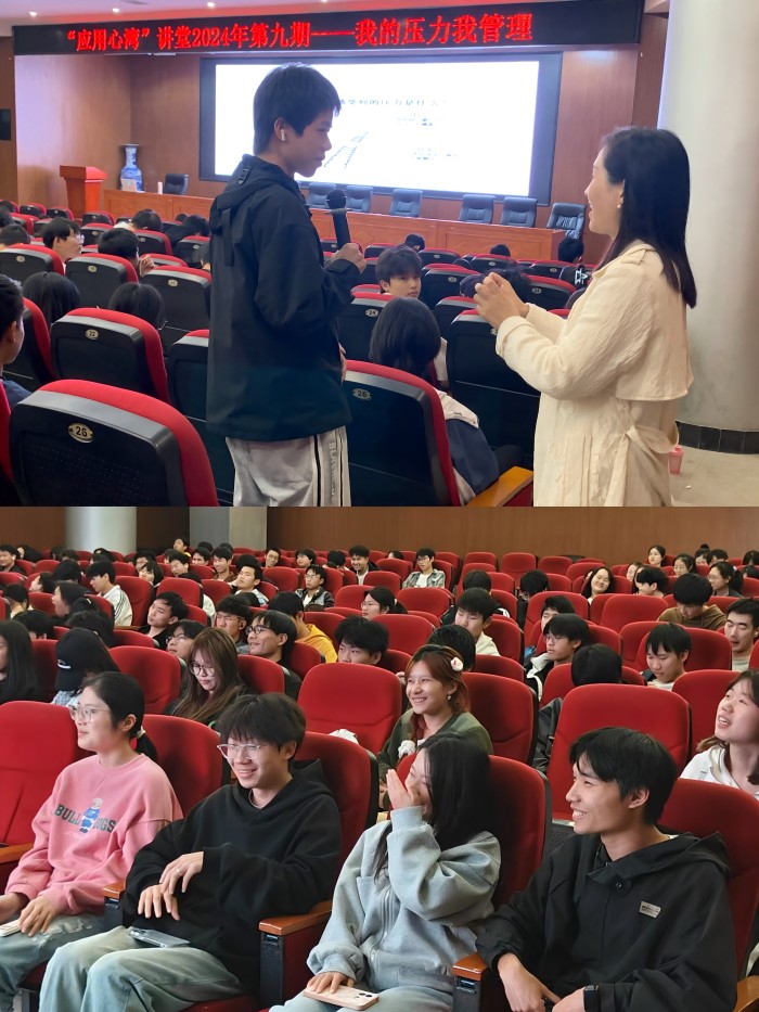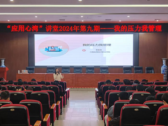 为进一步关爱学生心理健康,促进学生全面发展,帮助学生理解和应对学习、生活以及未来就业等方面的压力,提高他们的心理调适能力和生活质量,12月5日下午,学校“应用心湾”讲堂举办了《我的压力我管理》专题讲座。讲座由学生工作部心理健康教育与咨询中心常春英老师主讲,310余人聆听了讲座。