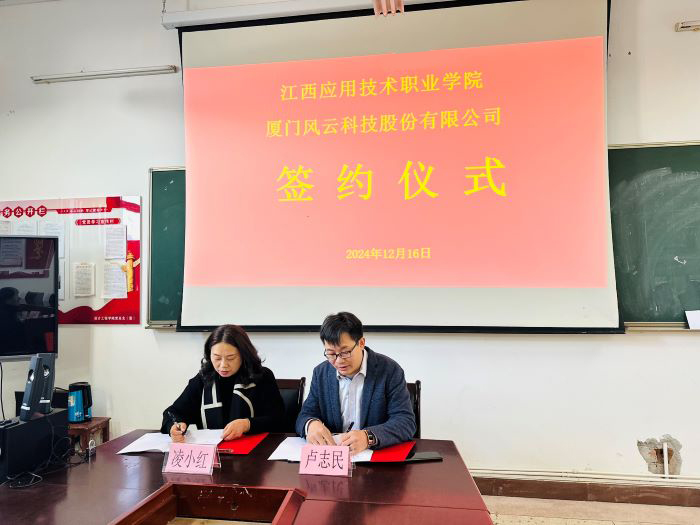 12月16日,我校与厦门风云科技股份有限公司校企合作签约仪式在设计工程学院5102会议室举行。学校产教融合中心主任胡孝贵,厦门风云科技股份有限公司教育事业部总经理卢志民、事业部商务经理何秀端、设计工程学院院长凌小红及党总支书记曾晓亮等出席签约仪式,仪式由凌小红主持。