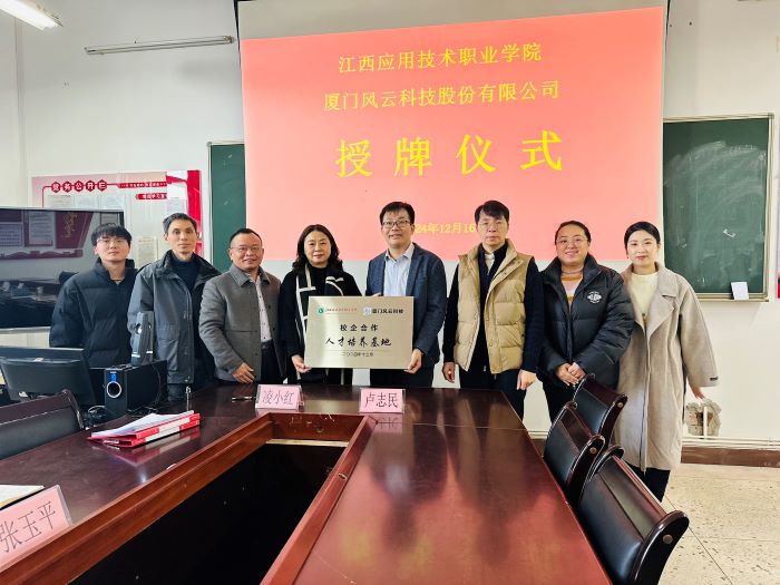 卢志民对学校的热情接待表示感谢,表达了对此次合作双方未来的发展前景充满信心。他与大家分享了公司的发展历程以及核心业务。并强调,厦门风云科技股份有限公司一直重视与高职院校的合作,这是企业持续创新和发展的关键,双方将在构建人才共享机制、搭建人才共育共培平台、搭建技术服务平台、大赛合作及推动产教深度融合方面,共同推动向更深层次发展。