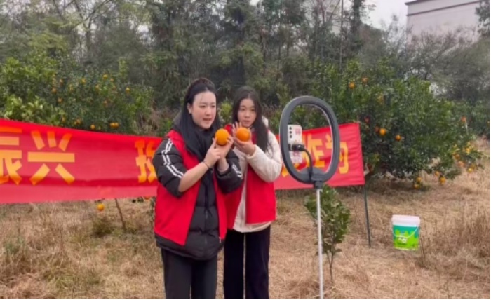 在三江镇橙乡柚园,“村村播”志愿者们结合所学的专业知识,开展了电商直播助农活动,帮助农户销售脐橙。志愿者主播通过生动有趣的方式详细介绍了三江脐橙的种植过程、特点及其营养价值,并现场试吃脐橙,对脐橙的口感进行了分享,过硬的品质、优惠的价格、专业的解说吸引了大量的观众驻足观看。观众们详细询问产品的细节,提出自己的疑问和顾虑,志愿者主播都针对性地进行了回答,现场氛围热烈,观众纷纷表示要上链接以便下单抢购。