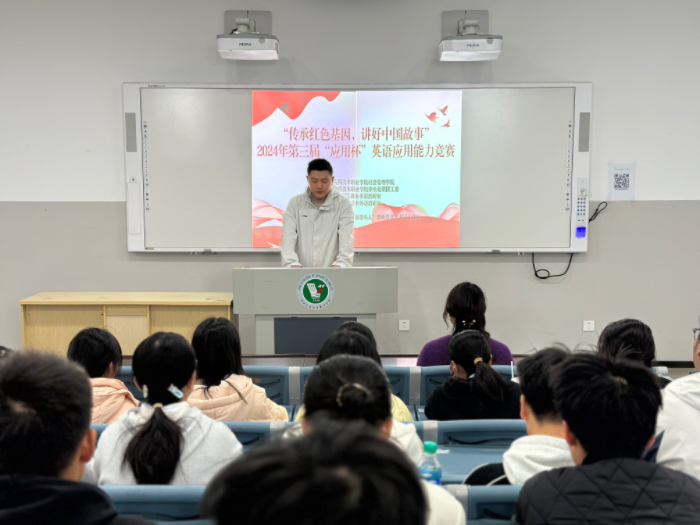 日前,由社会管理学院与江西应用技术职业学院学生社团团工委主办,公共外语教研室、商务英语教研室、英语协会联合承办,社会管理学院“双带头人”教师党支部书记工作室协办的“传承红色基因 讲好中国故事”第三届“应用杯”英语应用能力比赛在11栋505举行,社会管理学院党总支副书记谢宇飞、商务英语教研室负责人罗海琳、英语协会指导教师陈洁及40余名学生参与活动。