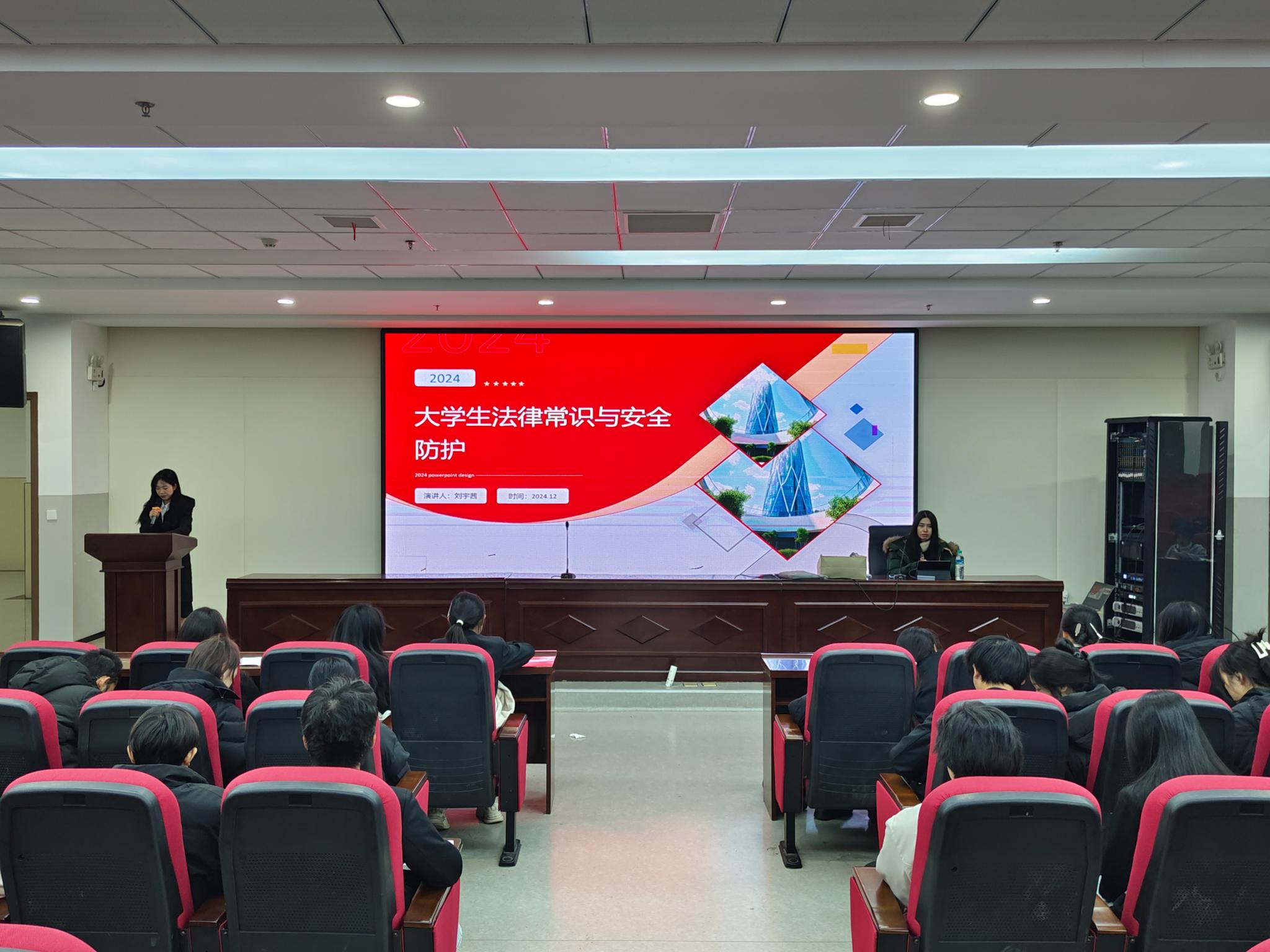 为深入贯彻依法治国理念,切实提升学生法律意识,12月19日,学校第十六期“青马工程”大学生骨干培训班开展“大学生法律常识与安全防护”主题授课活动,本次授课由马克思主义学院老师刘宇茜主讲,校级“青马工程”大学生骨干培训班全体学员参与。