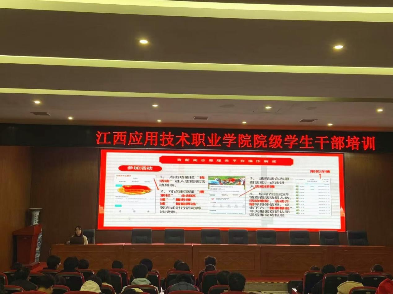 12月20日,校团委为二级学院学生干部培训班开展志愿服务工作专题培训,校团委老师陈妍主讲,培训班全体学员参加。