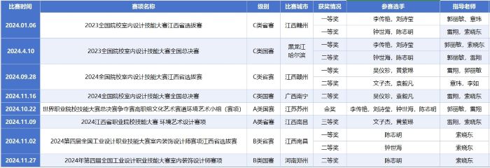 议程开始雷翔与索晓东回顾了2024年以来工作室的主要工作和突出成绩,重点对“以赛促学、以赛促训”的相关成果和成绩进行了梳理。本年度,工作室师生参加各类赛事共8项,参赛学生共8人,累计组成参赛队伍共12支,参与备赛指导老师共5人,全年共获得国家级一等奖2项、二等奖3项,以及省级一等奖4项、二等奖2项、三等奖1项,成绩喜人,成果丰硕。其中特别突出的是在2024年世界职业院校技能大赛总决赛争夺赛环境艺术赛项中,由设计学院老师郭丽敏、雷翔的指导的李传艳、刘诗莹、钟世海、陈志明四位同学斩获全国金奖,这是本赛事改制以来的全国首赛首金,也实现了我校在世界职业院校技能大赛文化艺术大类奖项上的历史性突破,意义重大。