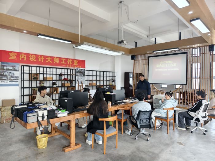 12月30日中午,在10栋教学楼5楼,设计工程学院老师雷翔和索晓东主持召开了设计工程学院室内设计工作室2024年工作总结会暨2025年招新会。23室艺01、02、03班、215室内等班级中的工作室成员,以及24室艺班内新挑选出的优秀同学现场参会,22室艺各班的工作室成员在线参加了会议。
