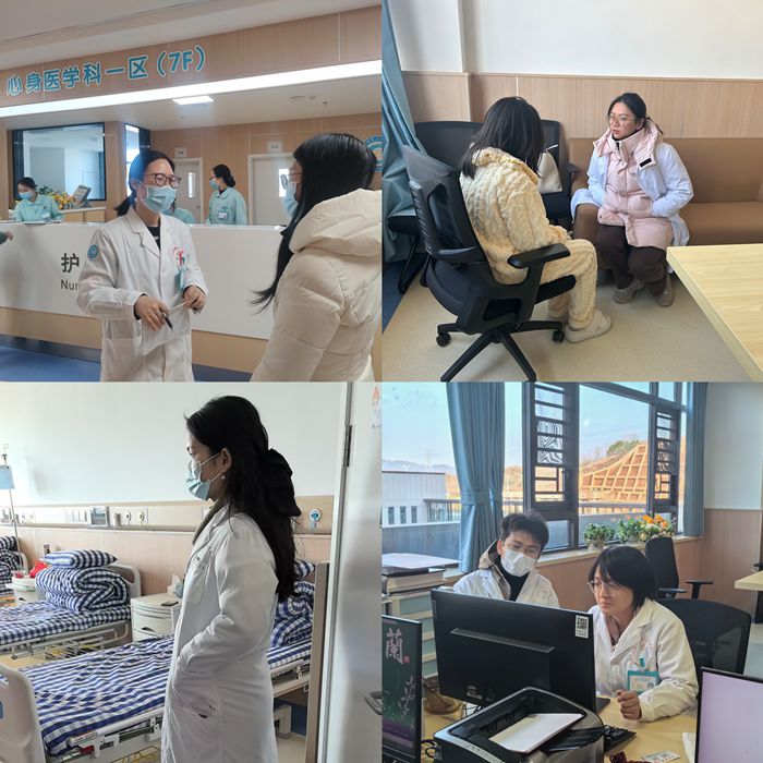 此次跟岗锻炼的8位教师,分成4组,分别分配到心理治疗检测室、心身医学科,儿少精神心理科、睡眠科等不同科室。在医院医生的指导下,心理教师们深入了解了心理疾病和精神疾病的问诊流程、治疗方法以及康复注意事项。跟岗期间,心理教师们通过门诊跟诊、病房查房、案例研讨等多种形式,不仅聆听了资深医师的临床案例分享,还近距离学习并参与了心理评估、心理咨询、心理治疗等专业技能的实操过程。