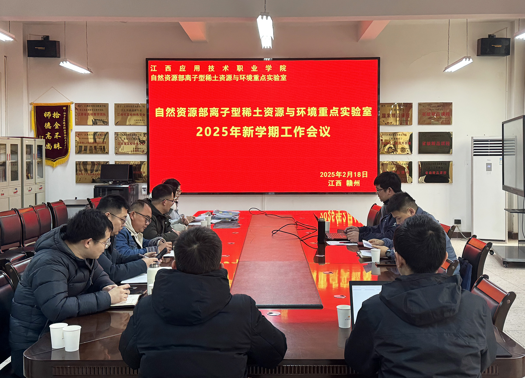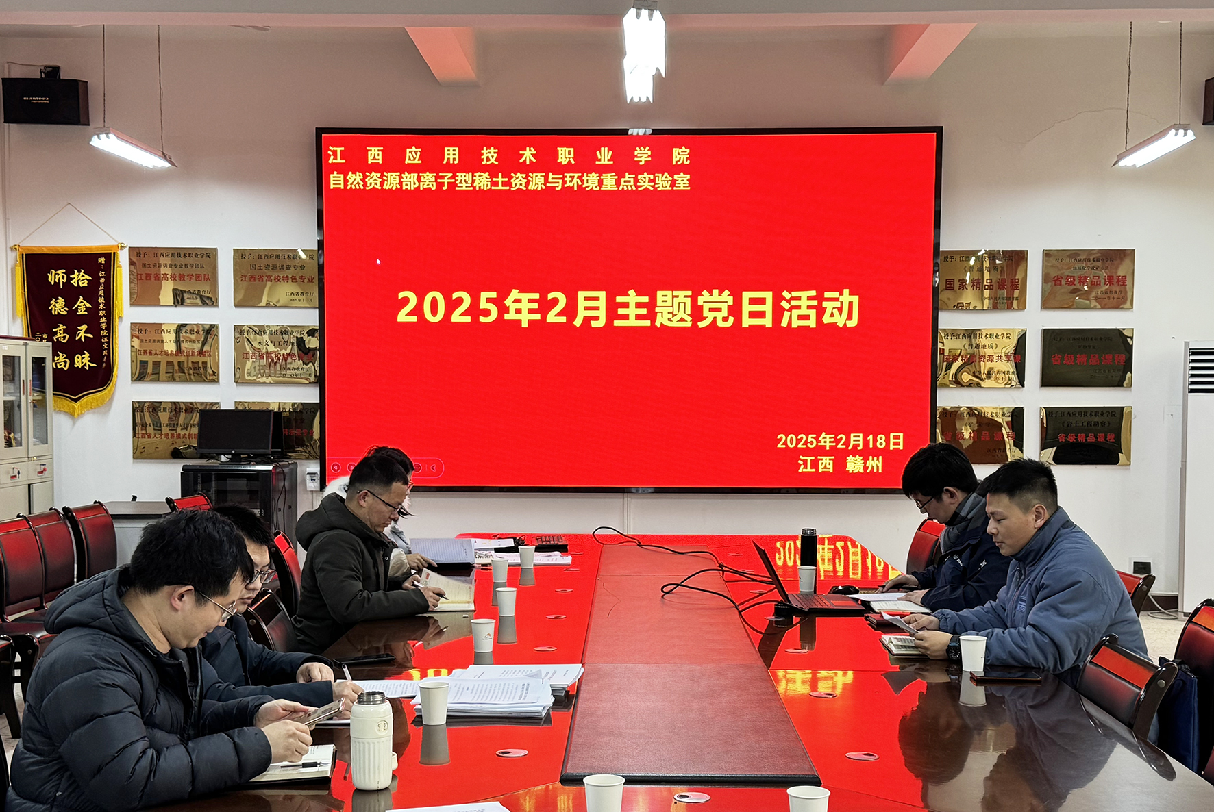 2月18日下午,我校自然资源部离子型稀土资源与环境重点实验室在西实训楼3楼资环学院会议室召开2025年新学期工作会议和开展主题党日活动。重点实验室常务副主任吴德海、党支部书记饶耕玮、各研究方向负责人和常驻研究人员参加会议。会议分两阶段进行,第一阶段为2025年新学期工作会议,由常务副主任吴德海主持;第二阶段为主题党日活动,由党支部书记饶耕玮主持。