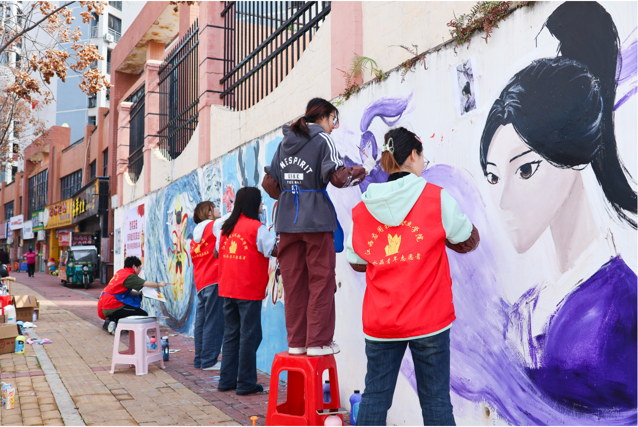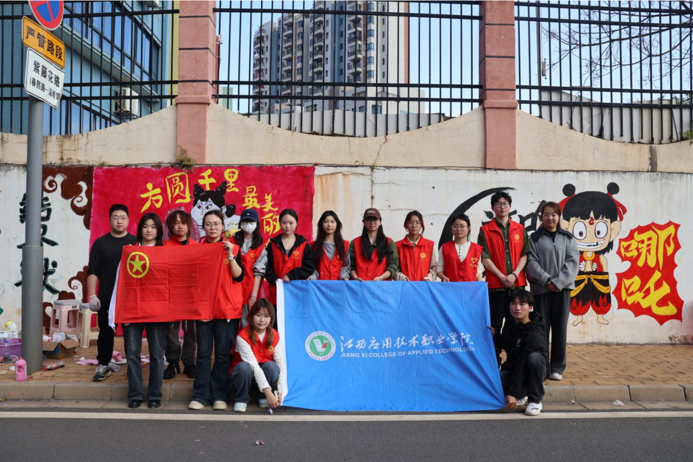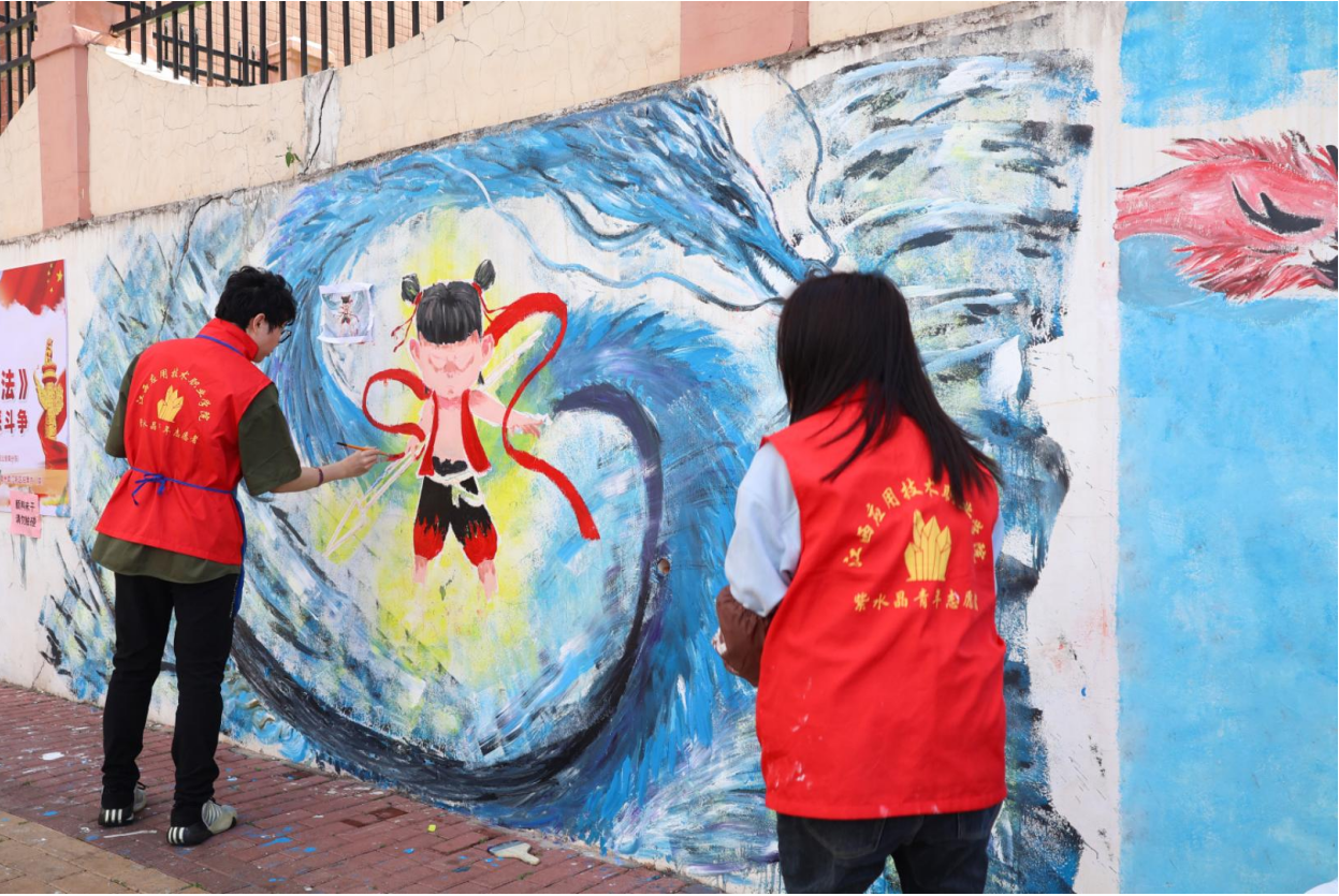 为弘扬“全心全意为人民服务”的雷锋精神和“奉献、友爱、互助、进步”的志愿精神,2月27日至2月28日,团委组织设计学院、社会学院的师生志愿者前往阳光·金色春城社区开展“青春绘就童趣,哪吒“闹”美社区”志愿活动。此次活动以哪吒为主题,通过墙绘艺术为社区增添文化色彩,增强社区居民对传统文化的认同感,同时弘扬传统文化,传递积极向上的精神力量。