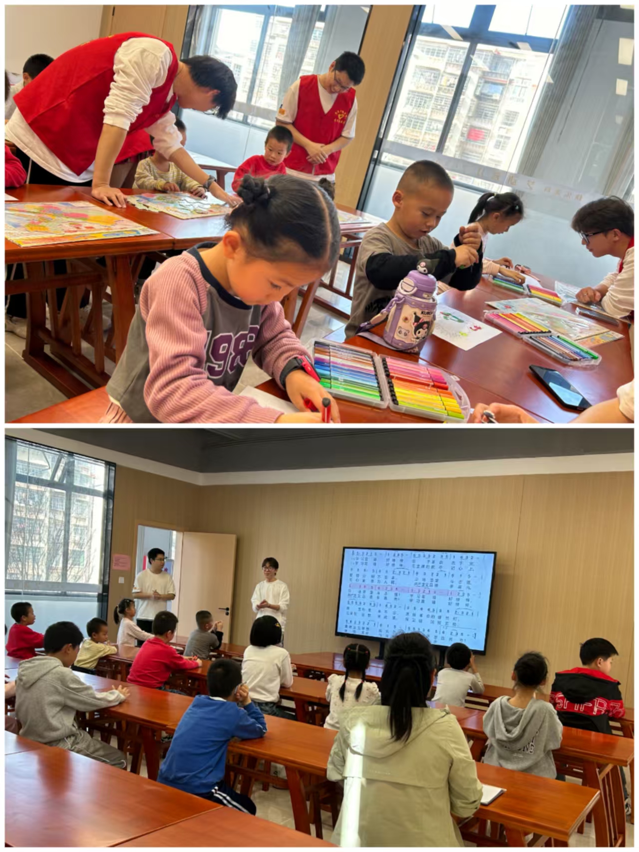 志愿者们还组织了“学雷锋”主题创意涂画活动,孩子们用画笔描绘雷锋形象,志愿者们一旁指导色彩搭配与构图技巧。一幅幅色彩斑斓的画作不仅展现了孩子们的创造力,更将雷锋精神具象化。在游戏互动中,志愿者结合雷锋“出差一千里,好事做了一火车”的故事,引导孩子们思考“如何以雷锋为榜样守护祖国”。一位小朋友兴奋地说:“我要像雷锋叔叔一样,长大后建设祖国。”