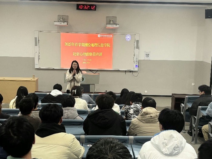 为进一步加强大学生心理健康教育工作,完善学院心理健康教育四级网络体系,提升寝室心理联络员的专业素养和工作能力,3月5日晚,测绘地理信息学院在11栋205教室举办了2025年春季学期寝室心理联络员培训。学院130名寝室心理联络员参加了此次培训。