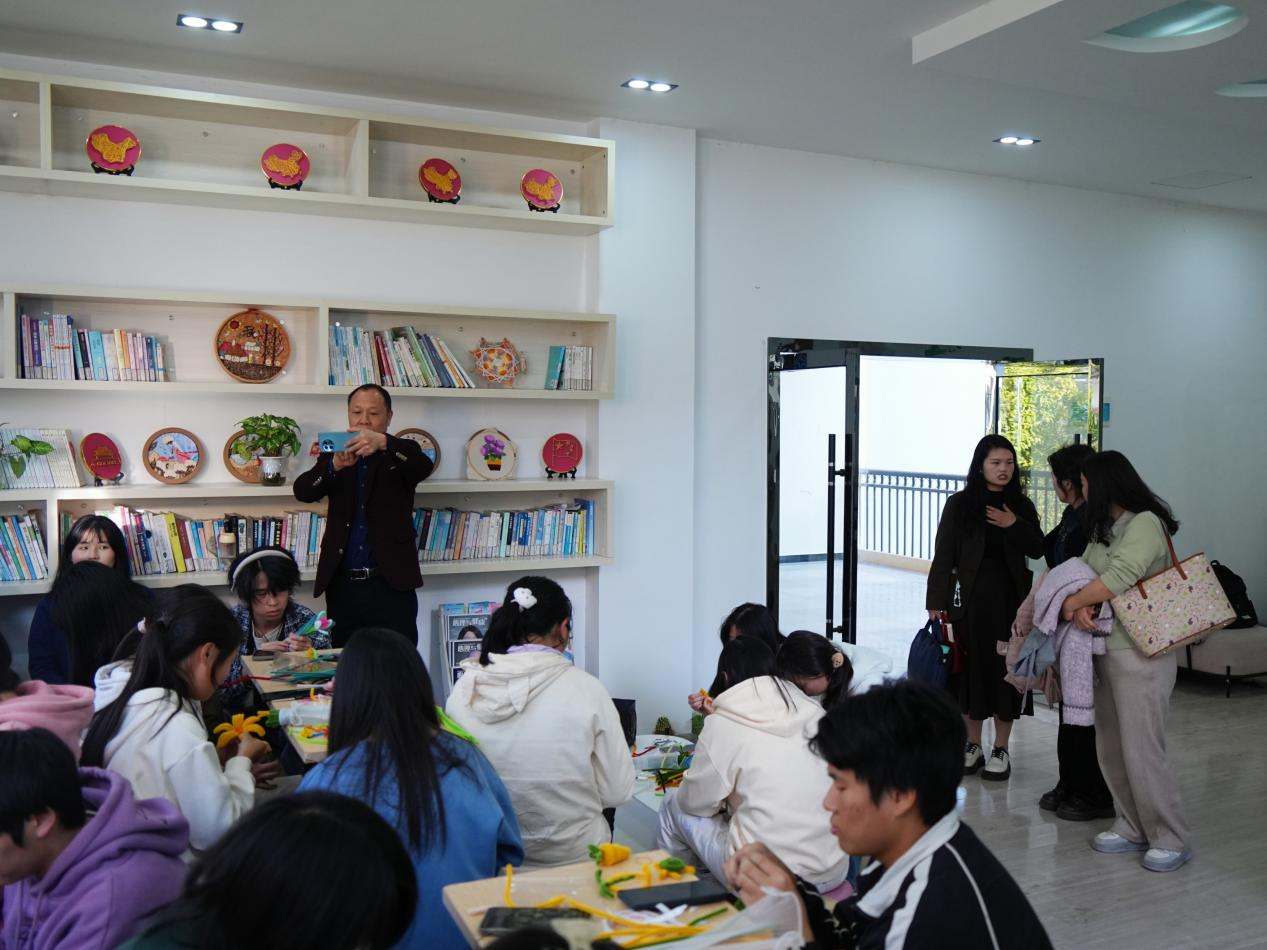 会后,一行人实地参观了大学生心理健康教育中心,细致了解心理中心各类软硬件设施以及学生日常预约体验情况、各项特色活动并欣赏了学生的手工作品。