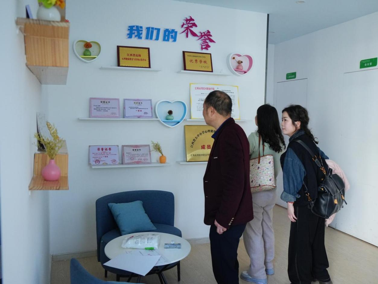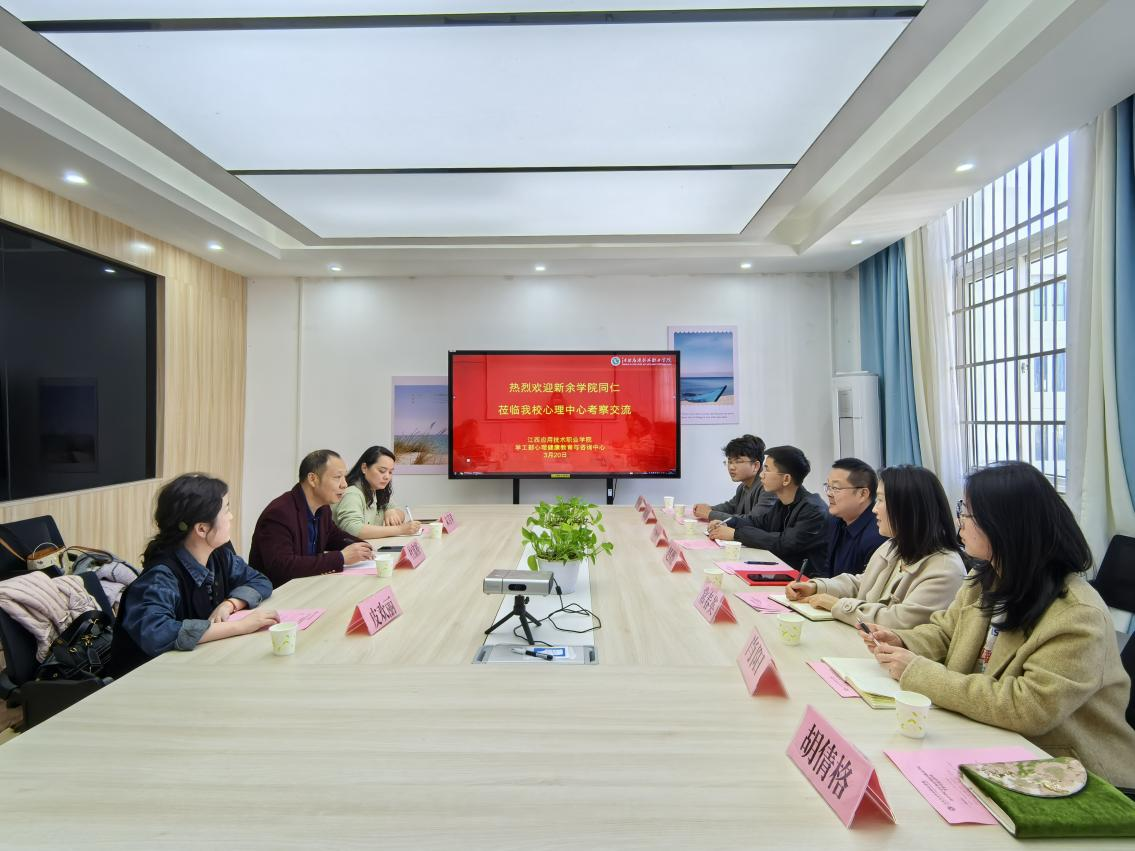 3月20日下午,新余学院心理健康教育中心主任杜富裕、心理教师朱芳琴、心理辅导员皮欢丽一行3人到我校心理健康教育与咨询中心参观交流。学校学工部部长赵薇、心理中心教师及二级学院心理教师等参与接待。