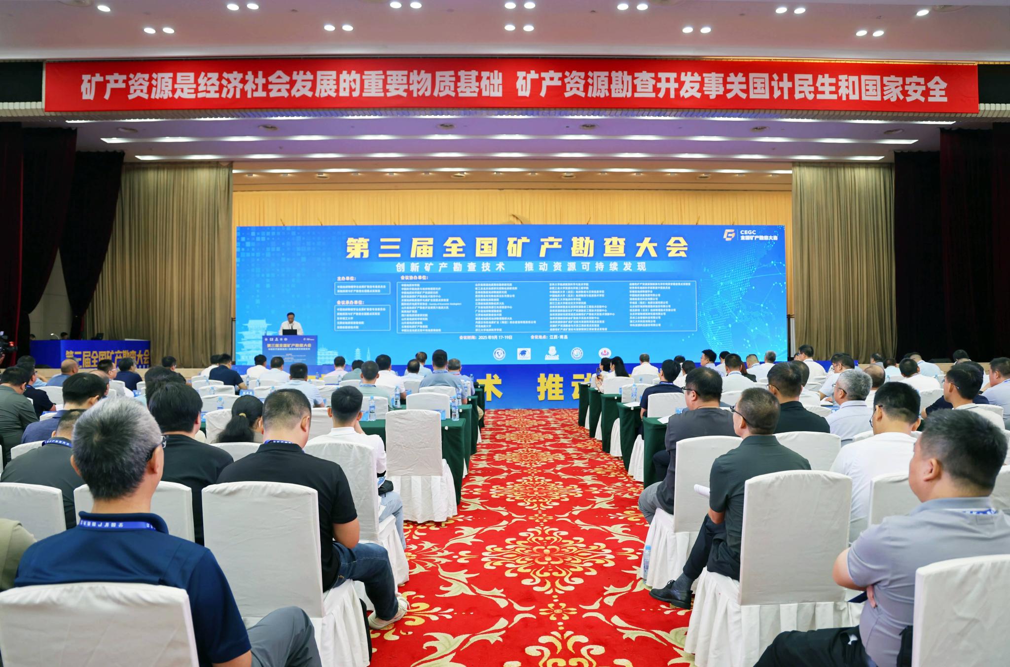 9月17日至19日,第三届全国矿产勘查大会在南昌召开。大会以“创新矿产勘查技术推动资源可持续发现”为主题,深入贯彻落实习近平总书记给山东省地矿局第六地质大队全体地质工作者的重要回信精神,聚焦国际矿产资源形势和国内重大需求,紧跟当代科学技术进步,围绕国家能源资源安全保障、地球深部勘查方法技术等内容进行深度学术研讨。来自全国高校、科研院所、地勘单位、矿业开发及仪器设备生产研发等300余家单位的1200余位代表参加大会。我校党委书记、自然资源部离子型稀土资源与环境重点实验室主任张家菁作为特邀嘉宾带领研究团队参加本次大会。