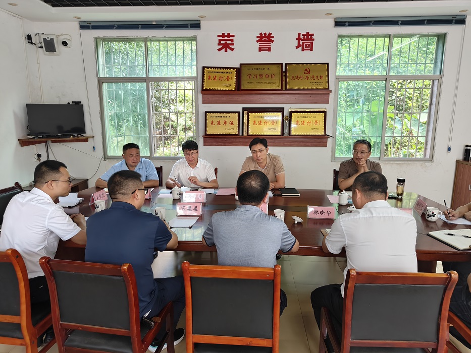 杨潮兴一行实地调研了我校帮扶项目,在肯定帮扶成效的同时,也给出了一些建设性的改进意见和建议。随后在站塘村委会召开的座谈会上,杨潮兴听取了驻村第一书记兼工作队长萧笃飞的工作汇报,与站塘乡党委书记林晓华、站塘村党支部书记罗启亮就乡村振兴工作交流意见。