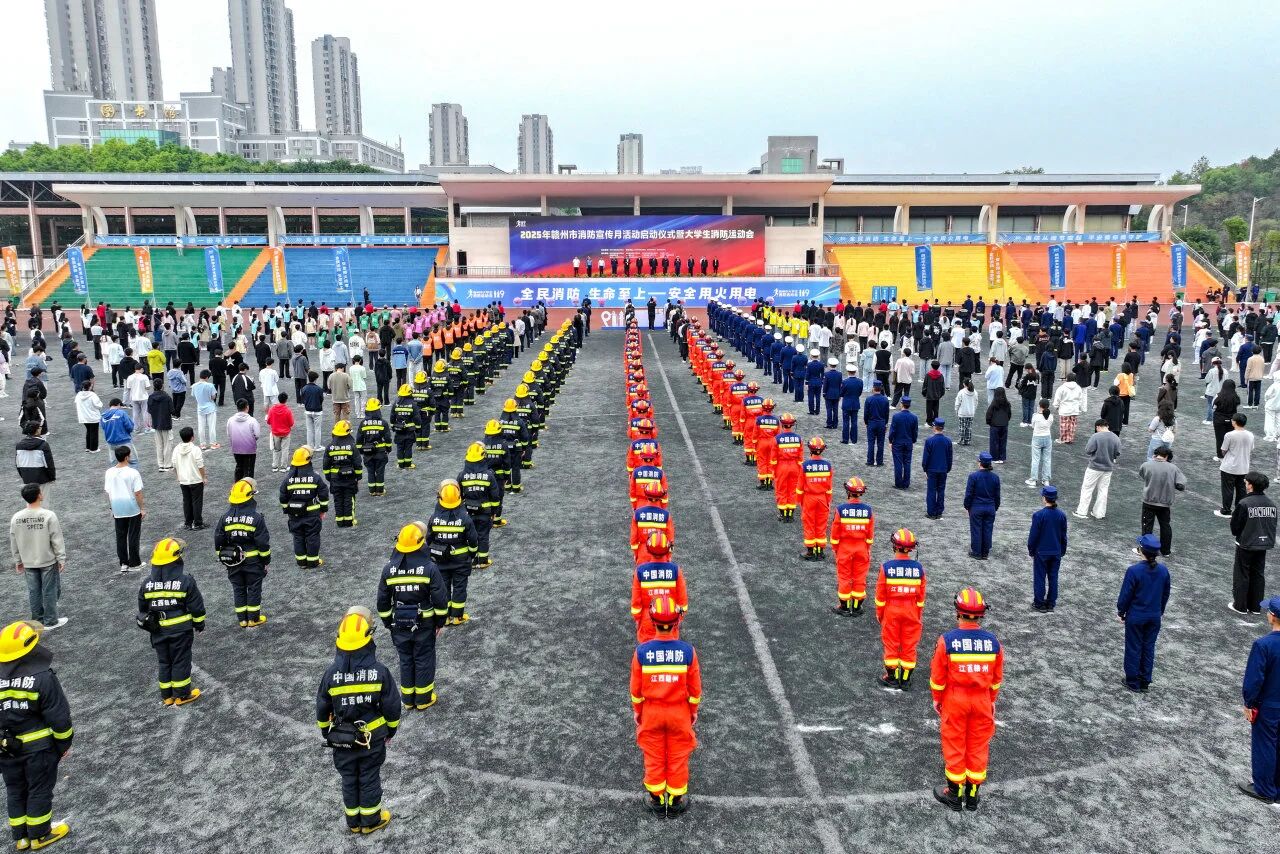 11月8日,2025年赣州市消防宣传月活动启动仪式暨大学生消防运动会在赣南科技学院举行。赣州市副市长、公安局长叶新出席仪式并宣布活动正式启动,赣南科技学院副院长左群出席并致辞,活动由市副秘书长王彦主持。市应急管理局、市消防救援局主要负责同志,市教育局及全市10所高校分管负责同志,市消防安全委员会相关成员单位代表、消防救援指战员以及师生代表共计750余人参加了此次活动。我校党委委员、副校长曾毅前往观赛,安保处处长卢东等陪同。