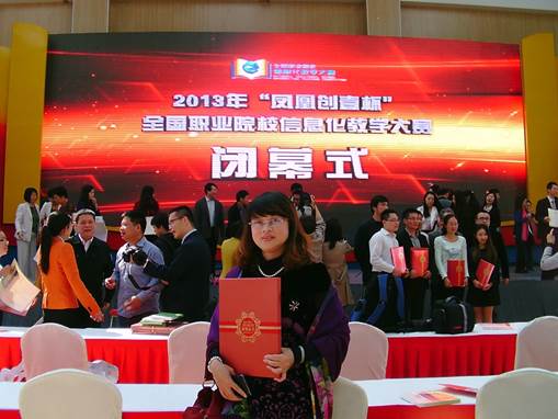 2013年全国职业院校信息化教学比赛于2013年10月18日至21日在江苏南京举办,我院机电系教师龙永莲经学校推荐,省教育厅评选,通过了全国初评,入围了最终的决赛,获得了2013年全国职业院校信息化教学比赛(教学设计赛项高职组)二等奖。