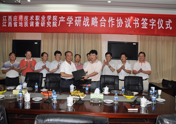 2010年7月13日,为呼应国家职业教育发展战略和国家资源开发战略,贯彻落实国务院《关于大力发展职业教育的决定》和《关于加强地质工作的决定》,我院与江西省地质调查研究院本着优势互补、平等合作、互利双赢、共同发展的原则,召开专门会议,举行揭牌仪式,全面建立校企产学研战略合作关系。