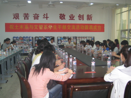 5月12日下午,土木系在实训楼二楼会议室成功举办了一场学生干部交流会,土木系和文管系的团总支、学生会主要学生干部出席了本次交流会议。会议在土木系团总支副书记杨丰同学的主持下进行。