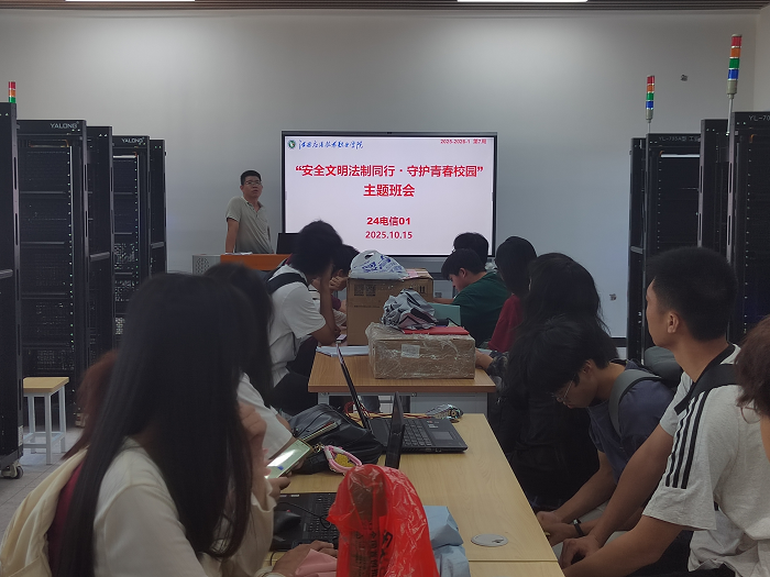 各班级陆续召开了“安全、文明、法制教育月”动员主题班会。班主任们细致讲解活动方案,结合专业特色与班级实际,引导学生深刻理解教育月的重要意义。班会聚焦防范电信诈骗、共建文明宿舍、传承红色基因等关键议题,鼓励学生人人参与、人人尽力、人人共享,将“安全、文明、法制”的内化于心、外化于行,凝聚起积极向上的校园文化正能量。