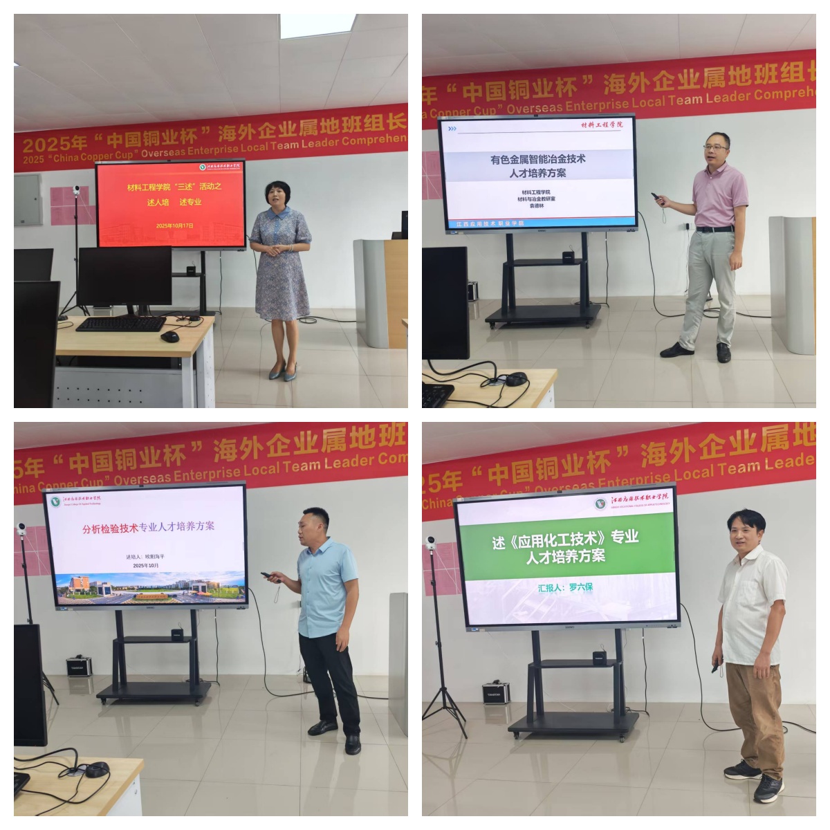 在紧随其后的“述人培”环节,三位教研室主任依次登台,详尽阐述了各自负责专业的人才培养方案。材料与冶金教研室主任袁德林对《有色金属智能冶金技术》和《稀土材料技术》专业进行了全面解读;工分教研室主任欧阳海平细致介绍了《分析检验技术》专业的培养特色与课程体系;化工教研室主任罗六保则围绕《应用化工技术》专业,分享了其人才培养的目标定位与实施路径。三位主任的汇报内容扎实,均从专业对应的产业背景与发展趋势、人才培养的具体目标与规格、课程体系的科学构建与核心课程设置等关键维度展开了深入浅出的说明,展现了各专业紧密对接市场需求、注重学生实践能力和综合素质培养的鲜明特色。