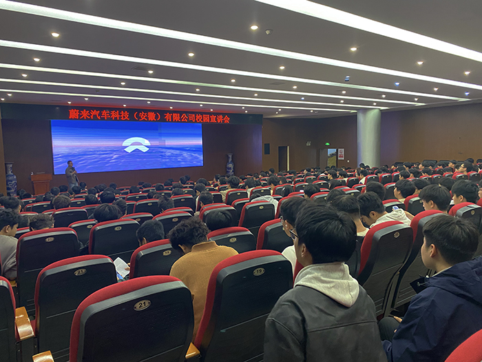 为深化校企合作,搭建优秀人才与企业对接的桥梁,10月23日,汽车学院特别邀请蔚来汽车科技(安徽)有限公司(以下简称“蔚来汽车”)走进校园,举办专场招聘宣讲会。蔚来汽车人力资源部何张强经理作为主讲嘉宾,为现场学子带来了企业十年发展历程、岗位需求、薪酬福利及面试流程的全面解读,吸引了三百余名学生热情参与。