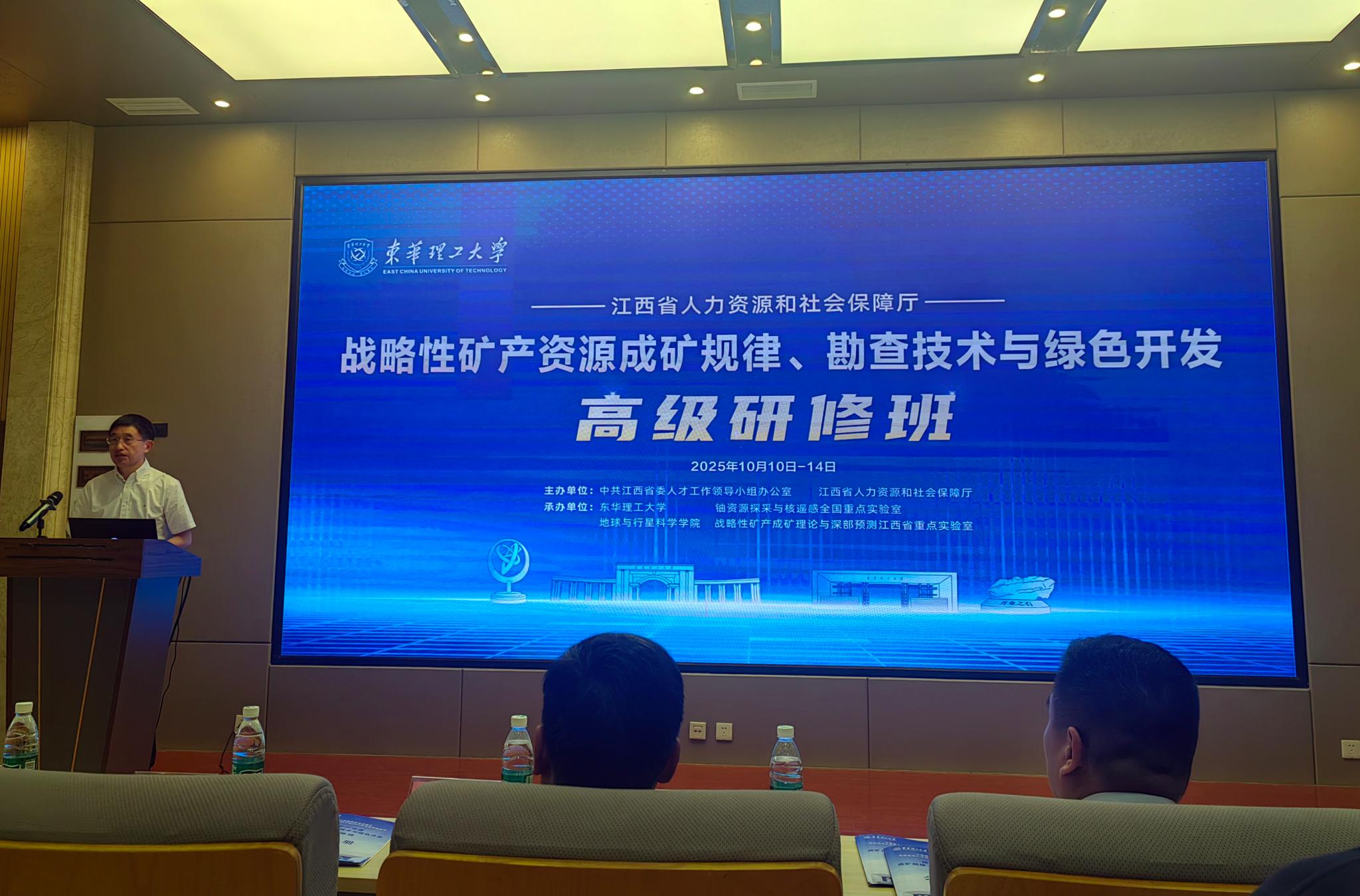 此次高级研修班由东华理工大学党委常委、副校长邓居智开班致辞,邀请了合肥工业大学、中国科学技术大学、中国地质科学院等10所高校及科研院所的知名专家授课。研修班是江西省专业技术人才知识更新工程的重点项目,课程内容紧扣国家战略需求,涵盖了稀土成矿理论、关键金属地质冶金学、高纯石英提纯关键技术、蚀变矿物勘查方法、砂岩型铀矿地浸开采及热液矿床填图技术等前沿知识与技术。