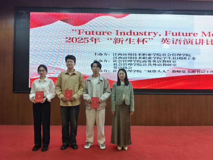 10月24日,由我校社会管理学院、学生社团团工委主办,社会管理学院商务英语教研室、公共外语教研室、英语协会承办,联合社会管理学院“双带头人”教师党支部书记工作室协办的2025级新生杯“Future Industry, Future Me”英语演讲比赛在图书馆科报厅成功举办。