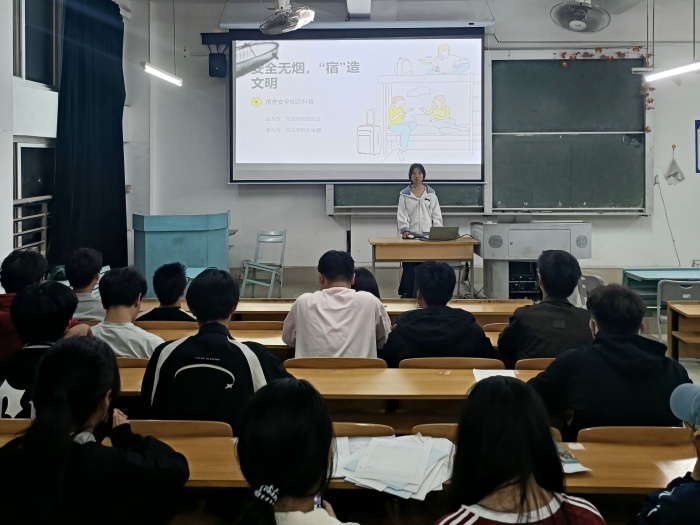 为筑牢宿舍安全防线,提升学生安全防范意识,汽车学院于10月29日19时30分于2栋206举办“安全无烟,‘宿’造文明”宿舍”安全知识宣讲,本次活动吸引了众多学生积极参与。