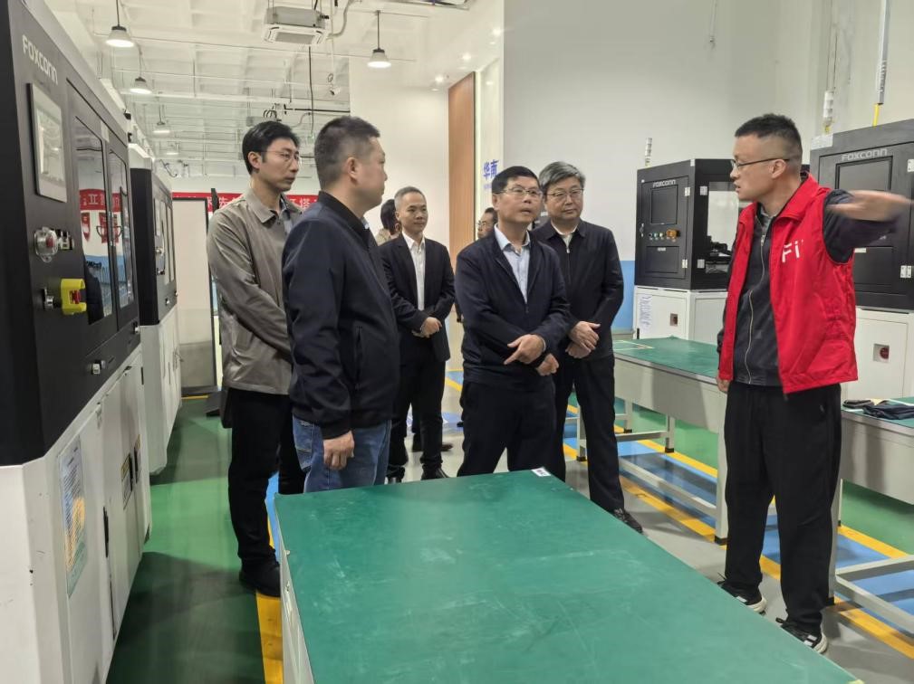 在富联精密科技(赣州)有限公司,王勇一行参观了工业富联华南产业技能人才培育中心、智能制造现场工程师学院教师企业实践流动站。详细了解了现场工程师班学生企业实践教学安排,学校教师为企业提供技术服务、培训服务等情况。