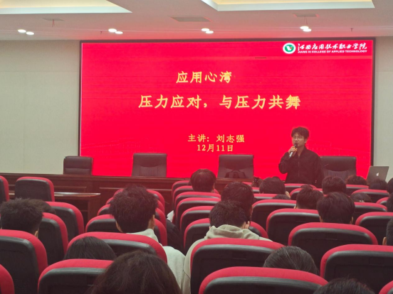 为切实增强学生心理健康素养,提升学生应对压力的能力,12月11日晚,我校“应用心湾”讲堂在11栋301教室举办了主题为《应对压力,与压力共舞》专题讲座,讲座由信息工程学院心理老师刘志强主讲,吸引了170余名师生参与,现场气氛热烈,互动频频。
