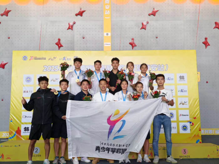 10月12日,以“新火燎原,攀无止境”为主题的2025年中国速度攀岩系列赛(福建南安站)在南安市九都镇天空骑士攀岩基地圆满落幕。作为全国最高级别速度攀岩赛事,本次比赛汇聚了来自全国各地15支代表队的81名顶尖运动员,在15米高岩壁上展开为期3天的巅峰对决。江西应用技术职业学院攀岩队代表江西出征,凭借稳定发挥斩获佳绩,男子速度接力队登顶冠军,女子速度接力队摘得铜牌,另获男女混合接力赛第四名。