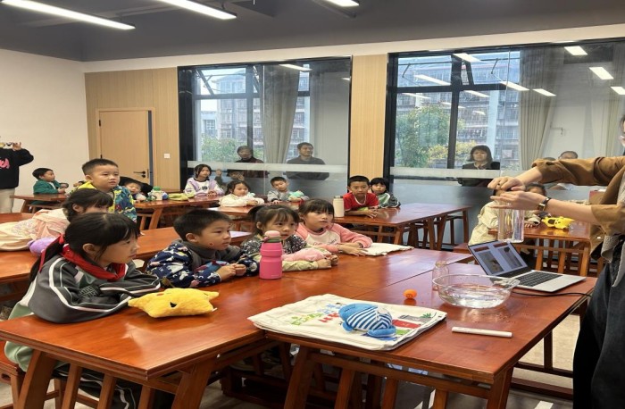 流体压强探究环节,“纸张靠拢”“纸条飞起来”等实验轮番进行。孩子们动手操作发现,向两张平行纸中间吹气纸张会贴近,向纸条上方吹气纸条会翘起。教师拆解原理并总结流体压强关键特征,还结合飞机升力、火车安全线、龙卷风掀翻屋顶等生活实例,引导孩子发现物理规律,现场互动热烈。