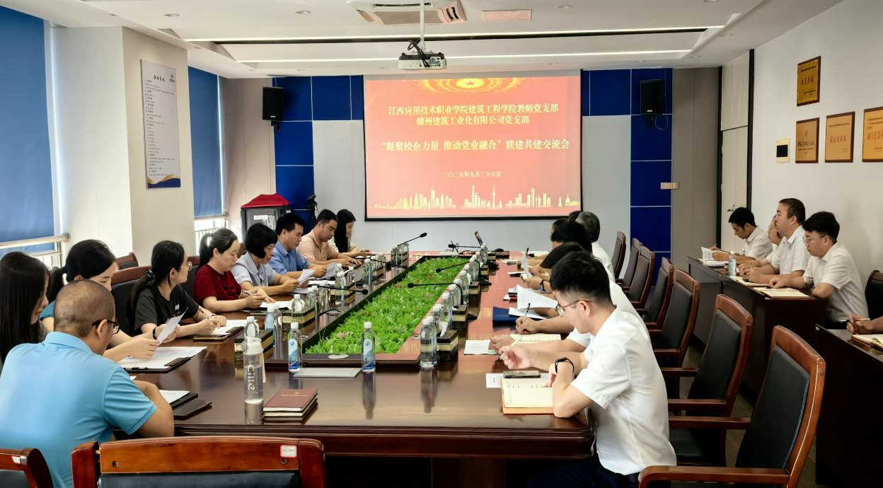 近日,建筑工程学院教师党支部与赣州建筑工业化有限公司党支部开展了“汇聚校企力量 推动党业融合”党建联建交流会。赣州建筑工业化有限公司党支部书记、董事长曾思智,副总经理、总工程师罗海平,副总经理、纪检委员胡磊,建筑工程学院院长李珺,副院长、教师党支部书记郭玉华出席联建交流会,双方支部党员共计22人参加活动。