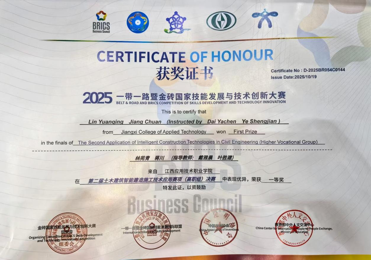 此次获奖,不仅是对我校师生专业能力与竞技水平的充分肯定,更是我校在土木建筑智能建造领域教学成果、人才培养质量的集中体现,彰显了学校聚焦行业前沿、强化实践教学的显著成效。