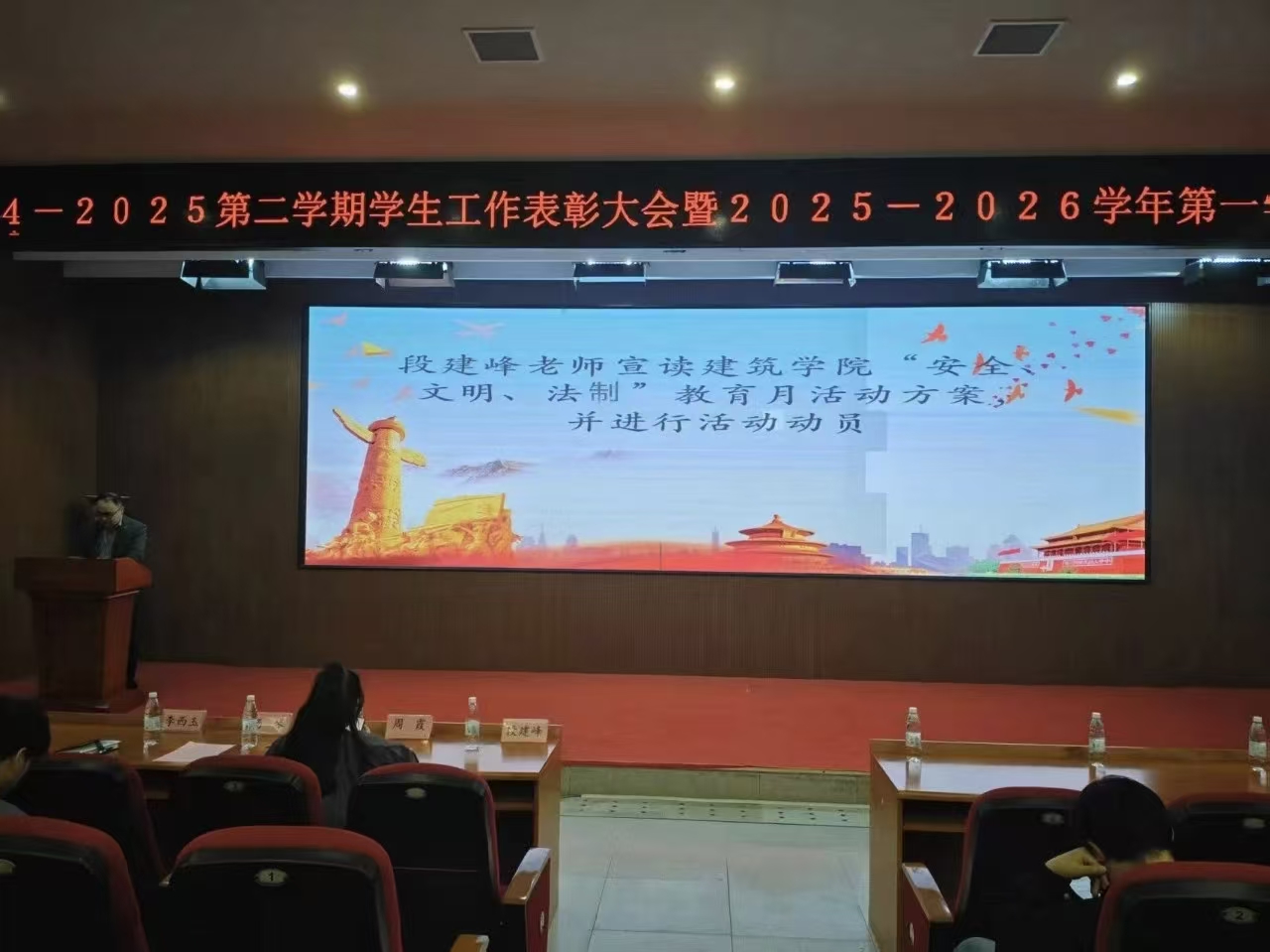 为贯彻落实学校2025-2026学年第一学期“安全、文明、法制教育月”活动要求,10月21日,建筑工程学院在图书馆报告厅召开“安全、文明、法制教育月”宣传动员大会。