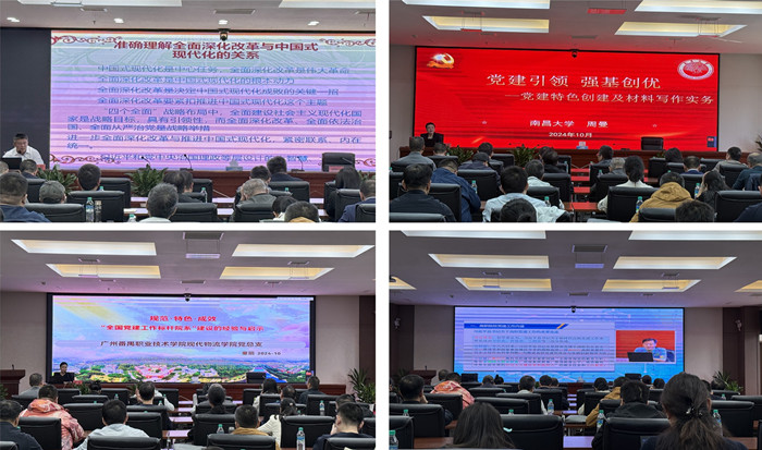 此次培训邀请了省内外多名专家学者,通过理论知识传授、案例分享、现场交流指导等方式和学员进行思想碰撞,产生理论和实践的共鸣。中国人民大学习近平新时代中国特色社会主义思想研究院研究员路克利教授主讲课程《学习贯彻党的二十届三中全会精神》,全面系统阐述了党的二十届三中全会的丰富内涵;南昌大学党委组织部副部长、党校常务副校长周曼主讲课程《党建引领 强基创优——创建党建特色材料写作实务》,围绕基层党建重点工作分享特色材料的写作方法,为学员提供针对性的写作技巧指导;广州番禺职业技术学院现代物流学院党总支书记童丽,以案例分享形式讲授《“全国党建工作标杆院系”建设的经验与启示》,助力基层党组织示范创建和质量创优。培训期间还集中观看了北京电子科技职业学院党政办主任张晓辉主讲课程《高职院校党建和业务工作融合的创新路径》。